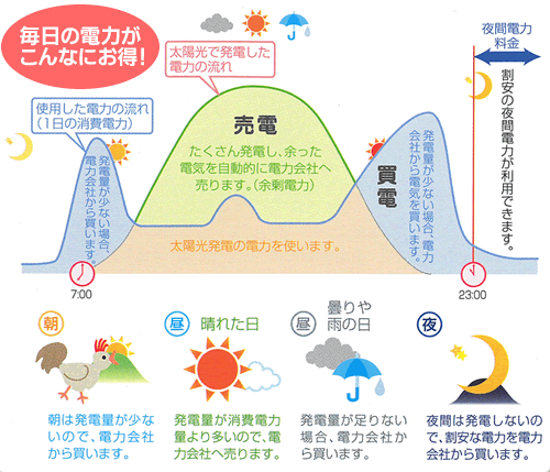 日没後は夜間電力を有効活用して、電気代をグッと減らすことができます。