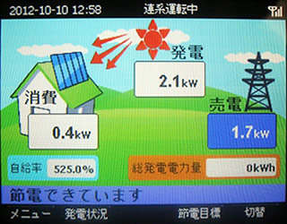 太陽光発電システムで、昼間は太陽光で発電。
